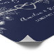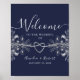 O elegante poster de boas-vindas ao marinho azul , com um simples coração de corda prateada e um lugar floral dourado.