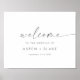 Este moderno poster de boas-vindas de prata é perfeito para um casamento minimalista. A simples design de cinza de cor prateada apresenta uma tipografia industrial única, com estilo 'boho' moderno. Personalizável em qualquer cor. Mantenha o design mínimo e elegante, como está, ou personalize-o adicionando seus próprios gráficos e trabalhos de arte. Personalize o poster com o nome da noiva e do noivo, e a data do casamento.
