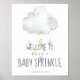 Este poster de boas-vindas do bebê da nuvem de chuva é perfeito para um bebê nascente moderno. O design bonito e simples apresenta gotas de água pastel, azul claro, amarelo e cinza, caindo de uma nuvem de cinza mole. Personalize o poster com o nome da futura mãe e a data do chá.