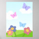 Este é um poster de borboleta fofo com um belo campo de flores.