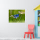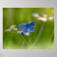 Poster é mostrado com uma impressão de foto de uma adorável borboleta azul em flores. Personalize este item ou comprar como está. Imagem do stock