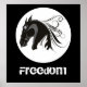 Cabeça de cavalo preto e branco e a palavra poster da liberdade.