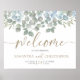 Linda placa de casamento rustica de eucalipto para seu dia especial. O Eucalyptus greenery tinha sido criado utilizando aquarelas e tem um efeito de poeira de ouro fino para esse toque adicional de luxo. A caligrafia de boas-vindas está em uma fonte legal escrita à mão em ouro espantoso. Fácil de editar com suas informações exclusivas.