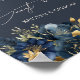 Poster de Casamento Floral Dourado Azul