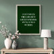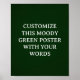 Eleve qualquer espaço com este poster/sinal personalizável, com um fundo verde escuro projetado por Toni. Este fundo é de uma pintura digital original, de modo que tem mais profundidade e interesse do que apenas um fundo de cor simples. O pano de fundo exclusivo para a sua citação ou informação personalizada faz com que o seu texto personalizado se sobressaia perfeitamente. Quer queiram mostrar uma citação favorita, verso bíblia, detalhes de eventos ou um ditado significativo, este impressão personalizável permite-vos dar vida às suas palavras de uma forma ousada e artística. Uma mistura perfeita de humor e singularidade, esta design transforma qualquer mensagem numa espantosa peça visual central. Clique em "Personalizar este design" para adicionar a sua citação e/ou clique em "Editar usando a ferramenta design" para alterar o texto e a cor do texto. O cenário continuará o mesmo. As fotos do Mockup mostrarão exemplos desse poster enquadrado/com correspondência. Você receberá apenas impressão ou download digital. Procure na minha loja mais fundos exclusivos para personalizar posters. Estes designs só foram encontrados no meu compro! Obrigado pelo seu interesse, agradeço o seu negócio!