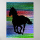 Uma silhueta de captura de olhos de um cavalo preto correndo contra um fundo texturizado de aquarela.