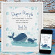 Feliz sinal de chá de fraldas de baleia para o seu jogo de rifa fralda para colocar na fralda e no ponto de partida do bilhete de rifa. A design apresenta uma mamãe e uma baleia bebê nadando no mar com um quadro de bolhas oceânicas. Ela é escrita em tipografia química com instruções de jogo editáveis e uma paleta colorida em tons de azul, aqua e verde oceânico. Se você quiser combinar produtos, por favor navegue na minha coleção de baleias felizes ou me envie uma mensagem para adicionar os modelos de design necessários.