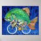 Óleo na canvas. Carpa numa bicicleta.