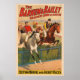 Vintage Barnum & Bailey Circus poster mostrando jockeys em cavalos saltando uma cobertura, por volta de 1900.