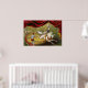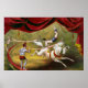 Poster de circo vintage mostrando acrobatas atuando a cavalo.