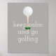 Esta poster de golfe é para golfistas em cinzas e brancos, com texto calmo e jogando golfe em casa ou no escritório.