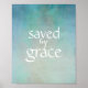 poster de citação inspiradora salva pela graça em fundo azul angustiado com texto branco arte para decoração domiciliar