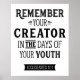 Poster com a escritura do Eclesiastes 12:1: "Lembre-se do seu criador nos dias da sua juventude"