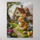 Bela Poster de Coelhinho da Páscoa. Felz pascoa com esses animais bonitos como coelhinho de Páscoa ou pintinho de bebê. Junte-se à caçada de ovos de Páscoa em primavera com cores vibrantes e alegria, doces e uma fantasia floral vintage. Coelho bonito com flores.