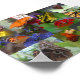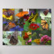 Um poster de colagem com uma grande variedade de borboletas coloridas, algumas delas em flores!