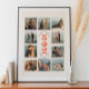 Celebre a sua história de amor com esta poster de colagem de noivado de fotografia minimalista da fase da lua. Com nove slots de fotos personalizáveis em volta de um sonhador design lunar de cor aquática, é uma maneira perfeita de mostrar sua jornada juntos. O motif da lua da crescente para o cheio lê "Ame você à lua e para trás" — um toque celestial romântico. Ideal como presente de noivado, decoração de quarto ou peça de exibição de casamento. Personalize facilmente com suas fotos, nomes e data.