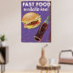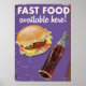 Poster de Comida de Vintage de comida rápida. Um hambúrguer vintage e refrigerante bebem poster art.