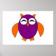 Esta poster apresenta uma coruja fofa com os olhos fechados como se estivesse dormindo e garras bonitinhas. Seu corpo é roxo e suas asas, ouvidos e garras e bico são laranja. Esta coruja fofa é tão adorável que os adultos a amarão tanto quanto as crianças.