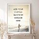 Crie sua própria arte de parede inspiradora com este poster de pôr do sol do oceano personalizável. Apresentando uma cena de praia serena com um surfista andando pela costa, este design é o pano de fundo perfeito para sua citação motivacional favorita, mantra ou mensagem pessoal. Ideal como decoração moderna, inspiração no escritório ou um presente personalizado pensado, este poster está disponível em vários tamanhos e formatos. Adicione seu próprio texto para torná-lo realmente único e otimizado.