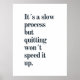 É um processo lento, mas desistir não vai acelerar. Arte de parede inspiradora, citação de motivação