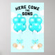Garoto criativo gêmeos decoração de chá de fraldas com bebês gêmeos debaixo de balões azuis.