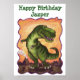 Feliz aniversário! Decorem a festa de aniversário temática de seus filhos adoráveis de dino com esta divertida Parada Animal Tyrannosaurus Rex Feliz Aniversário Personalizado Poster com nossa arte original de um divertido dinossauro TRex em uma paisagem pré-histórica marrom cheia de um vulcão fumante. Atrás do dinossauro branco está um céu amarelo texturizado, laranja e uma bela e tortuosa borda roxa. Este dinossauro fofo, de frente e de trás, em muitos dos presentes e acessórios divertidos do dinossauro, foi pintado pelo ilustrador de nossas crianças talentosas, Traci Van Wagoner. Tenham uma festa de piadas! Rawr!
