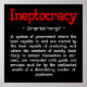 Poster de definição de ineurocracia (pequena) INEPTOCRACY (in-ep-toc'-ra-cy) - um sistema de governos em que os menos capazes de liderar são eleitos pelos menos capazes de produzir e em que os membros da sociedade menos susceptíveis de se sustentarem ou serem bem sucedidos são recompensados com bens e serviços pagos pela riqueza confiscada de um número decrescente de produtores.