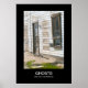 Lembrando bem as consequências do progresso, este poster demotivacional apresenta uma fotografia de Thompson Primaveras, Utah, uma vez parada na ferrovia e na estrada principal. Hoje em dia, muitas empresas encontram-se igualmente ultrapassadas. Mover, na verdade ou metaforicamente, é a melhor solução.