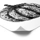 Poster com ilustração de estilhaçamento de abóbora preto e branco.