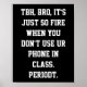 O Decor da Sala de Aula do Meio gira poster com texto que diz "TBH, mano, é tão fogo quando você não usa o telefone UR na aula. Periodt."