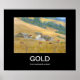 Esta poster apresenta um desenho colorido de lápis de médio-costa da Califórnia, fazenda de gado no meio do verão. O trabalho mestiço é baseado em uma fotografia original do artista tirada perto de Buellton.