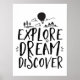 Uma legal letra de tipografia design com poster com viagem. Explore a descoberta dos sonhos. Suba em uma montanha, monte um balão de ar quente ou explore a selva. A cor de fundo pode ser personalizada para a cor desejada.