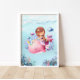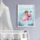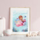 Adicione um toque de calor e suavidade ao seu pequeno berçário, quarto ou sala de brincadeira com esta adorável sereia montada na parte de trás de uma baleia rosa, suas caudas entrelaçadas enquanto caminham pelas profundezas do oceano, cercadas por peixes coloridos e corais vibrantes. Esta arte aquarela trará vida a qualquer quarto!