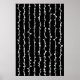 Uma design divertida e peculiar com longas linhas de manchas brancas sobre fundo preto.