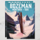 Poster de esqui de Bozeman Montana em um estilo vintage detalhado e bonito, com um pano de fundo ilustrado da bela paisagem.