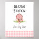 Gingham cor-de-rosa e poster de estação de comida floral para a festa de aniversário do seu filho!