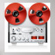 Os Stereos estão longe de como eram. Este design é um estéreo vintage legal. Ele tem duas grandes bobinas de fita no topo. Este design estéreo vintage parece excelente neste poster. Perfeito para si mesmo ou como presente