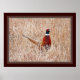 Este poster apresenta um faisão de pescoço de anéis. O faisão do pescoço do Anel, mais adaptado ao país aberto, foi introduzido como uma ave-caça em várias partes do mundo, incluindo a América do Norte. Aqui ele prospera em algumas áreas, como as pradarias nortes, onde as cores iridescentes e os ricos apelos aos machos acrescentam muito à paisagem. Os bandos de inverno destes faisões são frequentemente segregados — pequenos grupos de machos, bandos maiores de fêmeas.