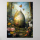 Poster de Páscoa excelente com um ovo grande de Páscoa e animais bonitos como um coelho ou coelho da Páscoa. Magical Fantasy Forest Floral Art com flores e animais adoráveis. Ovo Florestal.