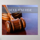 O gavel de um juiz de madeira sobre uma mesa. Cor marrom rica e foco nítido, além de um lugar para colocar seu texto personalizado.