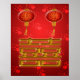 Caligrafia chinesa Dourada Dupla Felicidade e Texto Fênix e Dragão em Lanternas com Corações em Fundo Vermelho Festivo Auspício Casamento e Cartão de Saudação Noivado