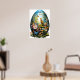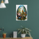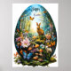 Poster de Páscoa excelente com um ovo grande de Páscoa e animais bonitos como um coelho ou coelho da Páscoa. Magical Fantasy Forest Floral Art com flores e animais adoráveis. Felz pascoa!