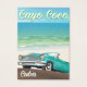Cayo Coco, poster de viagens vintage cubana de um automóvel retrorclássico.