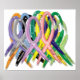 Uma variedade de fitas multicoloridas mostra a necessidade de Sensibilização para todos os tipos de canceres - mostra essas fitas em uma poster ou canvas e suporta a cura de que precisamos AGORA!