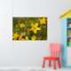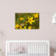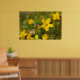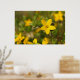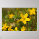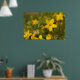 Uma flor amarela principal em foco com fundo amarelo e verde.