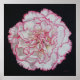 Poster impressão de uma pintura de óleo original. A flor de dianthus rosa e branca fica sobre um fundo preto, permitindo que as cores se pop.
