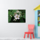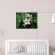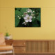 Esta bela impressão apresenta uma fotografia de uma vinha de amora coberta por flores. Essas lindas flores parecem brancas de longe, mas se você olhar de perto, as pétalas têm uma coloração rosa pálida.