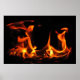 Este poster retrata a energia abstrato do fogo em um fogão a lenha. As chamas laranja, dourada e amarela aparecem como personagens dançantes alegres. Eles são disparados por um fundo negro.