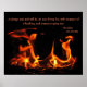 Este poster retrata a energia abstrato do fogo em um fogão a lenha. As chamas laranja, dourada e amarela aparecem como personagens dançantes alegres. Eles são disparados por um fundo negro. A citação é do filósofo grego pré-socrático, Heraclitus, de Ephesus, que viveu de c.535-c.475 AEC. Lê-se: ... sempre foi e será: um fogo que vive sempre, com medidas que o amontoam, e medidas a serem tomadas.