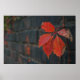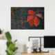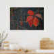 Poster mostrando folhas vermelhas com a parede escura como fundo